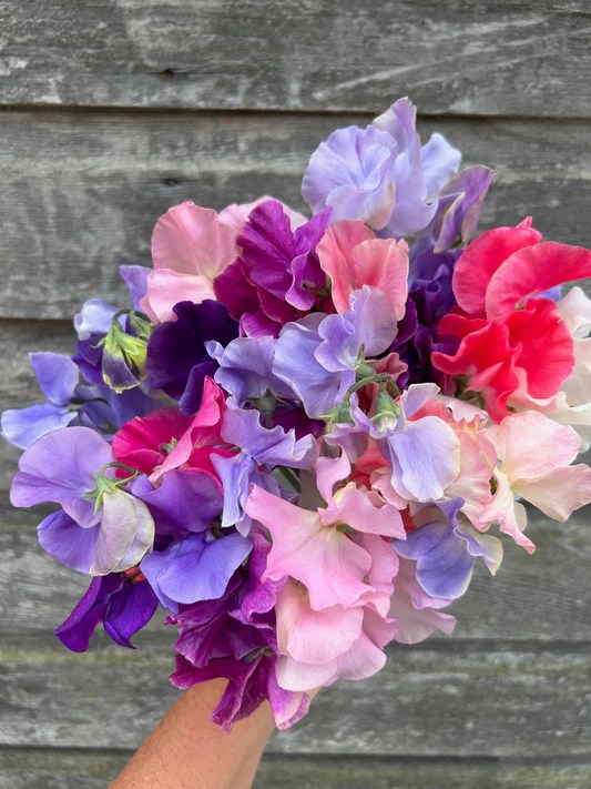 Did you know? Sweet peas are more than just pretty flowers—they are one of the most fragrant blooms you can grow. Their soft ruffles, climbing vines, and romantic colors make them a favorite for bouquets, but it’s the scent that truly stops people in their tracks. Light, sweet, and nostalgic, sweet peas are often one the first flowers that visitors lean in to smell during You-Pick season. I am excited to share them with you if I can keep the rabbits far away 🙂